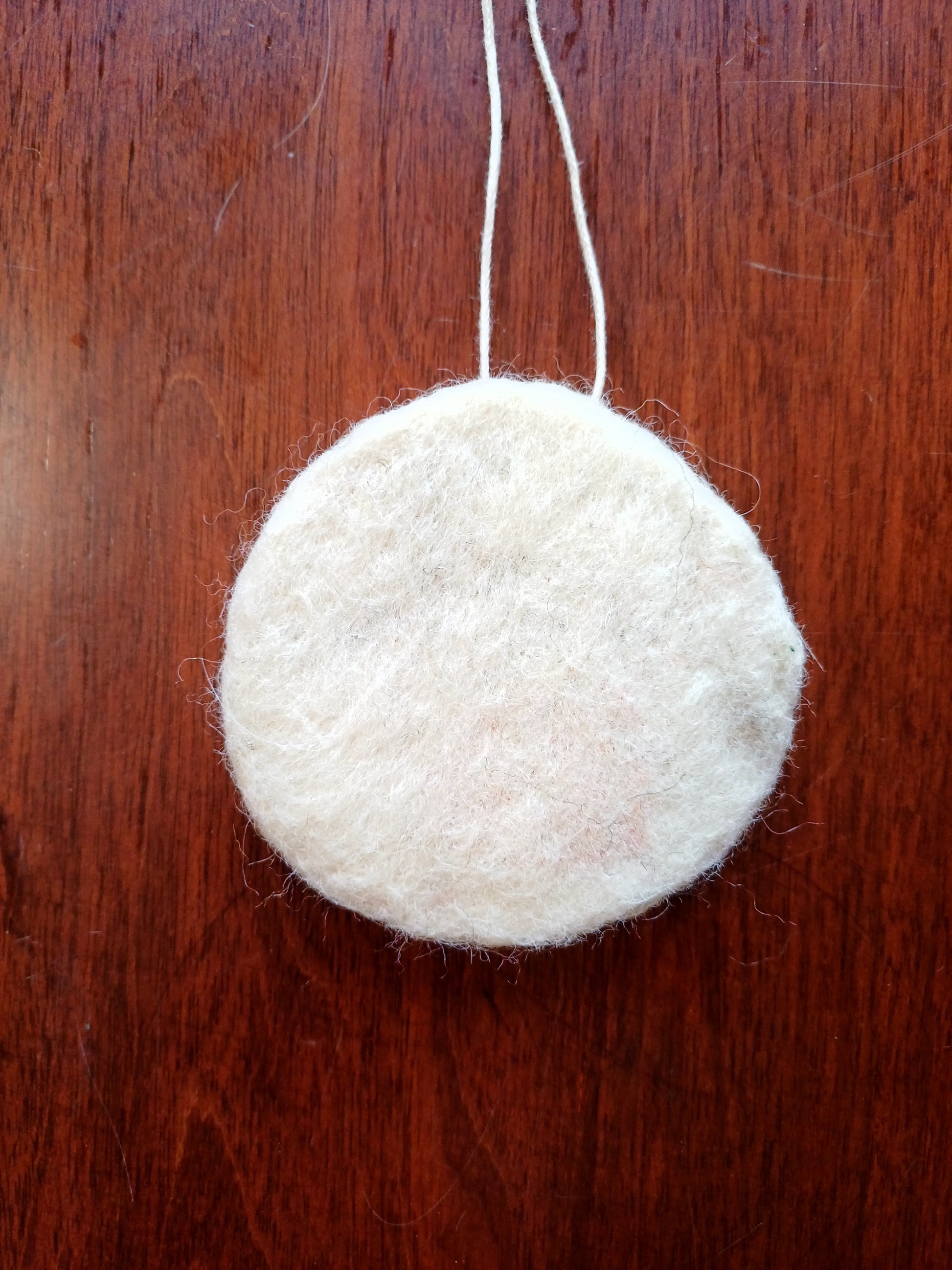 Each handmade decoration is needle felted from 100% sustainably sourced Shetland wool and hang from a strong waxed cotton cord. The back of each decoration is blank.