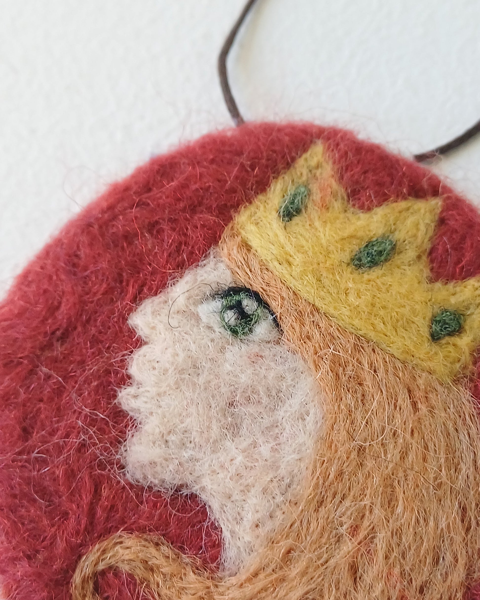 This needle felted decoration is made entirely from Shetland wool and hangs from a strong, dark brown, waxed cotton cord. The back of the decoration is blank. The back of the decoration is blank.